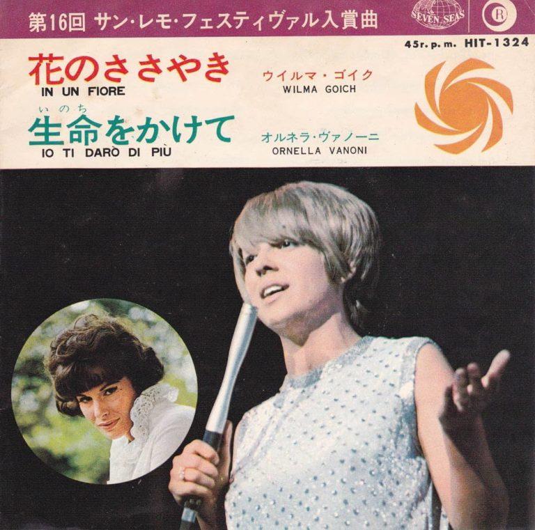 ウィルマ・ゴイクは、クロアチア系のイタリア人。サンレモ音楽祭で1965年「花咲く丘に涙してLe colline sono in fiore」に続いて1966年「花のささやき In un fiore」も入賞するなど1969年まで連続して参加しています。当時の日本はカンツォーネ・ブームで、ジリオラ・チンクエッティ、ボビー・ソロなどとともに活躍していましたね。